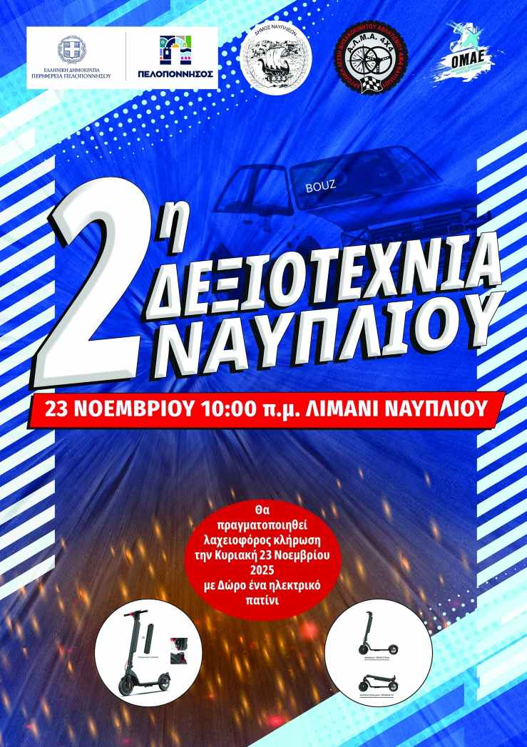 Ναύπλιο. Με φόντο τη θάλασσα και το επιβλητικό Παλαμήδι, η πρωτεύουσα της Αργολίδας ετοιμάζεται να υποδεχθεί και πάλι τους λάτρεις της ταχύτητας και του μηχανοκίνητου αθλητισμού. Την Κυριακή 23 Νοεμβρίου 2025, η Αργολική Λέσχη Μηχανοκίνητου Αθλητισμού (Α.Λ.Μ.Α.) ανεβάζει στροφές και διοργανώνει τη 2η Δεξιοτεχνία Ναυπλίου, μια διοργάνωση που αναμένεται να καθηλώσει το κοινό.